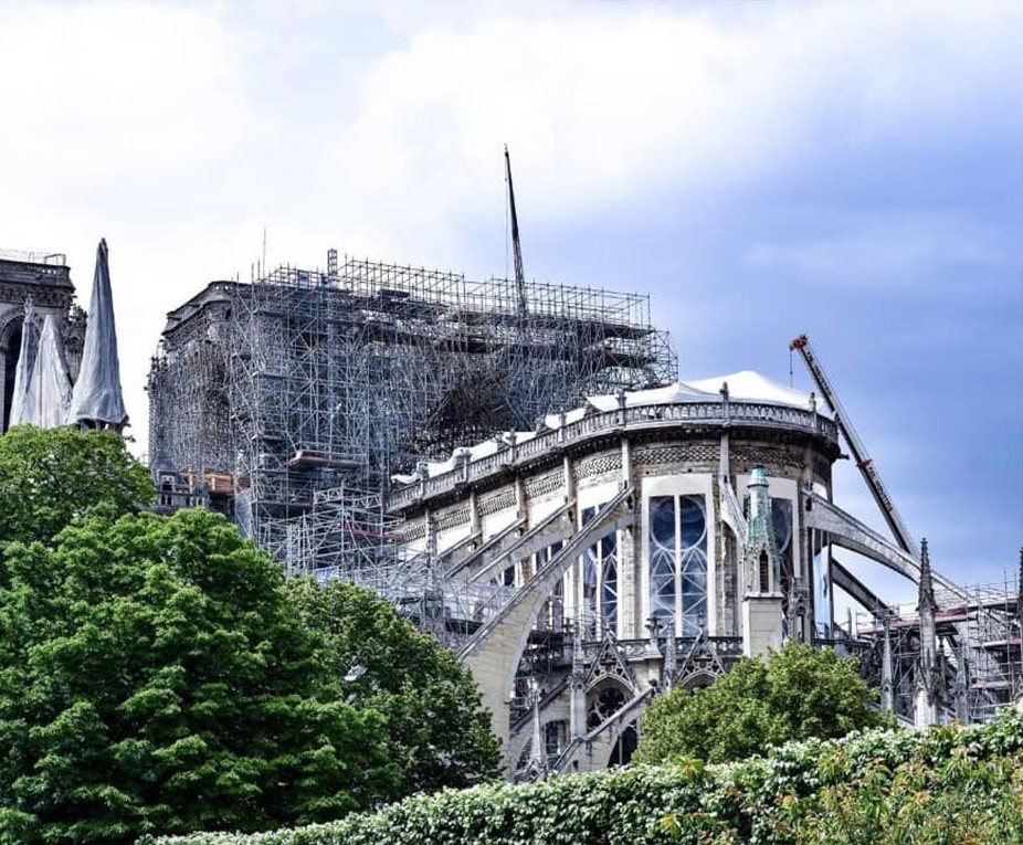 ۱۵ آوریل سال ۲۰۱۹ (۲۶ فروردین ۹۸) آتشی مهیب در کلیسای نوتردام پا گرفت و مناره و سقف آن را خراب کرد. داربستهایی هم که در آن زمان برای بازسازی مناره قدیمی این بنا برپا شده بود در آتش سوخته و درهمتنیده شدند. با گذشت یک سال از آتشسوزی کلیسای نوتردام، کار بازسازی این شاهکار معماری گوتیک با جداسازی داربستهای آسیبدیده در آتش، از روز ۲۰ خرداد آغاز شد.